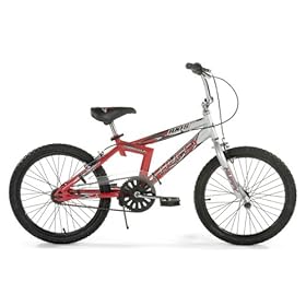 The Axis 20-Inch Boys BMX offers a sturdy steel frame, designed to outlast any daredevil rider. Made with a steel, unicrown fork and one-piece crank, this BMX bike is durable and handles with ease. The 38mm front pegs give you the range of motion to try out every trick with ease, while the knee-saver handlebars won't get in the way. The knobby tires, steel rims, and alloy four-bolt stem offer additional resilience to any kind of terrain and the F-Type chainguard keeps anything from interfering with your freestyle moves. The Axis 20-Inch Boys BMX bike includes a lifetime warranty on the frame and a six-month warranty on parts.