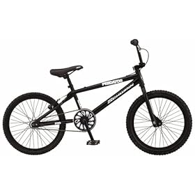 Comfortable and responsive, the Schwinn Predator Pro freestyle bike is ideal for doing tricks on the ground or off a ramp. The Predator Pro is equipped with such features as a race-inspired Cro-Moly steel frame, a Hi-Ten unicrown fork, and forged 175mm cranks. As a result, the bike performs well on tough terrain, but also excels on well-paved city streets. Other details include alloy rims and hubs, die-cast alloy pedals, Tektro linear pull brakes, Kraton grips, and a comfortable black saddle.